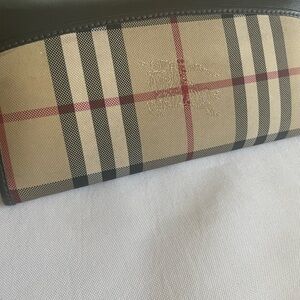Elegant Burberry wallet in sleek black leather. Features a classic design with ample space.like new