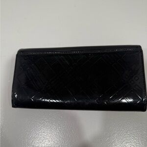 Elegant black patent leather clutch. Ideal for stylish outings.