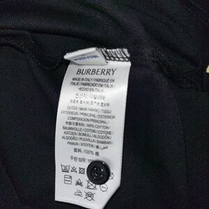 Stylish black polo Burberry check on shoulders. Perfect for casual elegance.