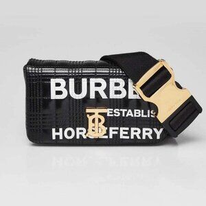 Burberry Black Quilted Coated Canvas Logo Print Belt Bag