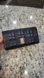 Stylish black quilted wallet featuring a gold logo accent. Perfect for organizing essentials.