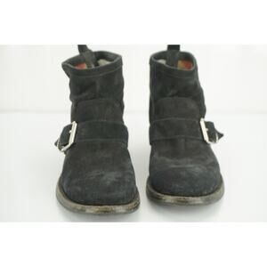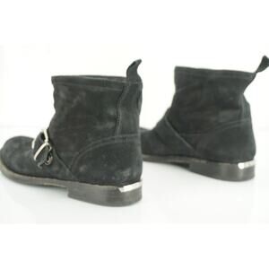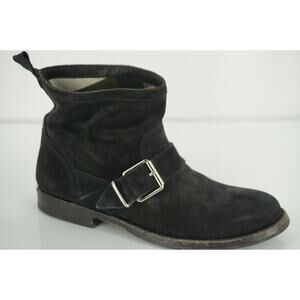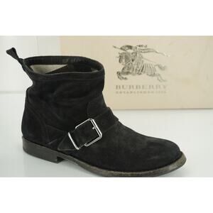Burberry Black Suede Motor Biker Short Ankle Boots Size 35 House Check