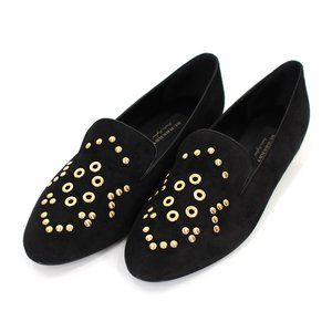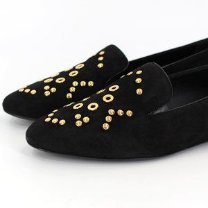Burberry Black Suede Runway Link Loafer Mormont Gold Eyelets Slip On Flat 37 NEW