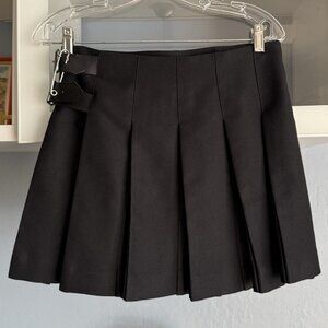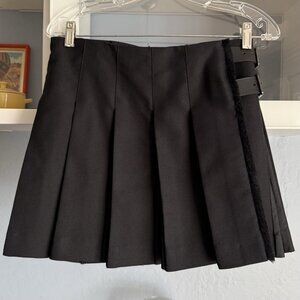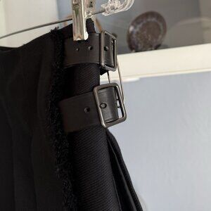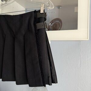 Burberry Black Wool Pleated Mini Skirt Side Leather Belt Buckles