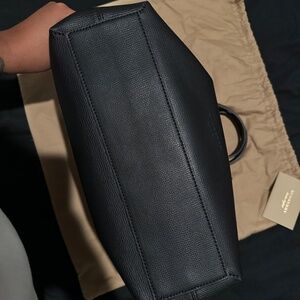 Elegant Burberry tote with classic check pattern. Black exterior with beige interior. Perfect for everyday use.