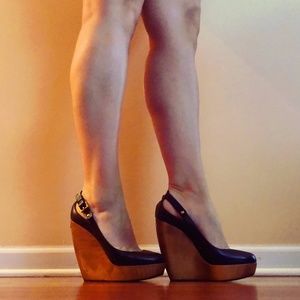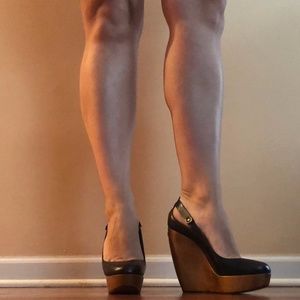 Burberry Black and Brown Wedge Heels