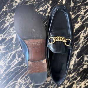 Burberry Black and Gold Slip-On Loafers with Chain Detail