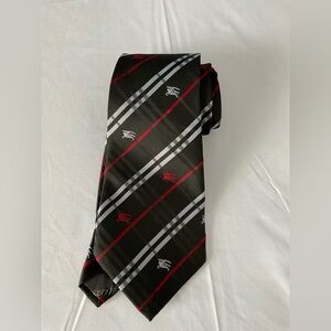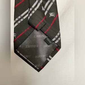 Stylish Burberry tie with black and red checkered pattern. Ideal for formal events.