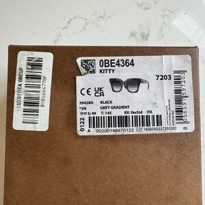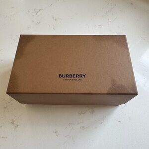 Never worn. Stylish Burberry sunglasses with a bold black frame. Features tan accents for a sophisticated look.