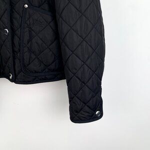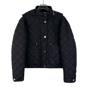 Burberry Black diamond-check hooded long-sleeve down jacket.