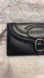 Burberry Black pebbled leather leather long wallet. Preowned with cute flap with buckle. Small minor wear to corners. With super small rubbing. Silver buckle has small scratches and minor tarnishing. Both snaps work great. Under flap has small scratches and little wear inside where the snap is. No holes. Small scratches under flap.
