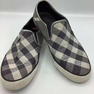 Burberry silver, white and black slip on sneakers women's size 39 (9). I would say it's a mix of sneaker and slip on.