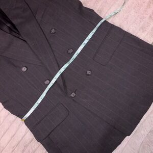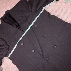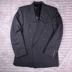 Burberry Blazer Mens 42 Black Wool Double Breasted Notch Lapel Pinstripe Jacket