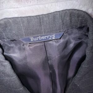 Burberry Blazer Jacket Mens Black Wool Double Breasted Notch Lapel Long Sleeve.