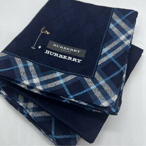 Elegant Burberry handkerchief featuring a blue checkered pattern and golf motif. Perfect for a touch of sophistication. Approximately 20.5โ square