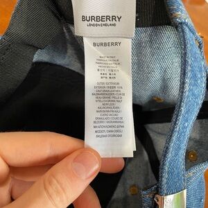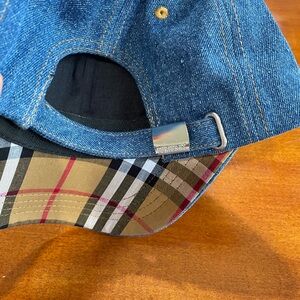 Classic Burberry authentic blue denim cap with embroidery. Ideal for everyday style. One size comes with adjustable strap. Ships securely as soon as possible.