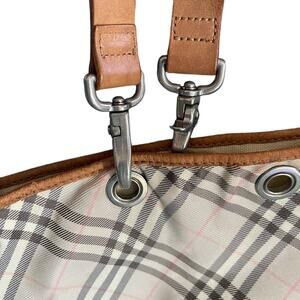 Burberry Blue Label Check Leather Trim Bucket Tote