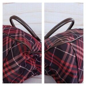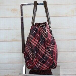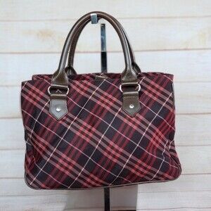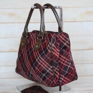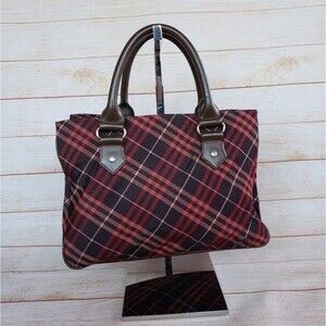 Burberry Blue Label Checkered Nylon and Leather Satchel Handbag