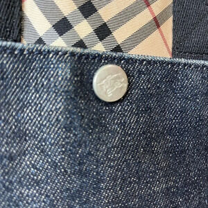 Authentic pre-loved. Denim and nova check combination with snap on closure. Black canvas handles. Denim corner rubs and nova check has tiny bubbling. Very cute and handy 😍