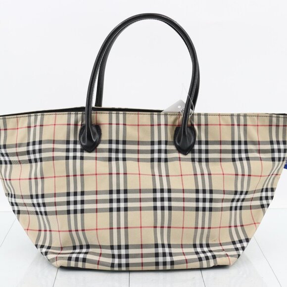 A practical and stylish tote bag from the Burberry Blue Label collection, featuring the iconic Nova Check pattern with black leather handles.