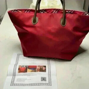 🔥🔥 Burberry Blue Label XL Red Plaid Tote & COA EUC!