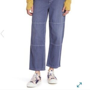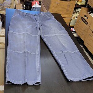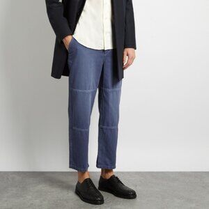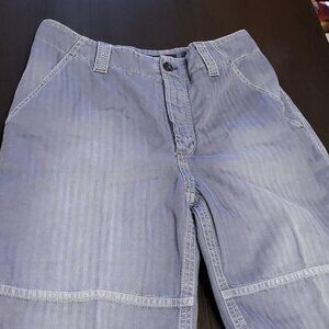 Burberry Blue Twill Stripe Linen Cotton Blend Short Cargo Pants Button Front 30
