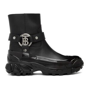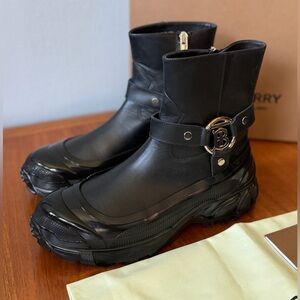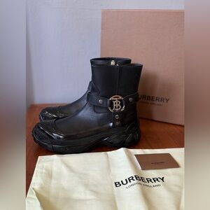 Burberry Boots Womans Leather TB Buckle Black Size EU 39.5/ US 9.5 $760