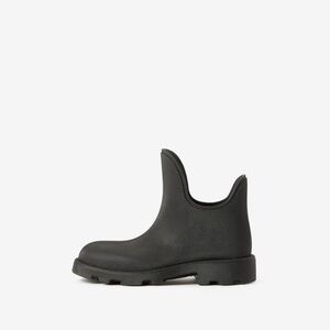 Italian-made ankle boots in rubber with a check lining. Inspired by wellies, the design is set on a chunky sole featuring archival Burberry lettering.