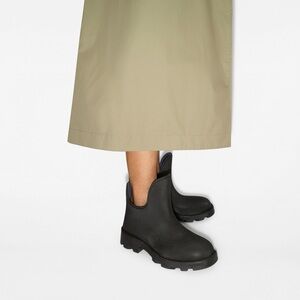 Italian-made ankle boots in rubber with a check lining. Inspired by wellies, the design is set on a chunky sole featuring archival Burberry lettering.