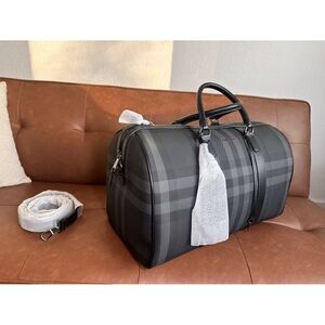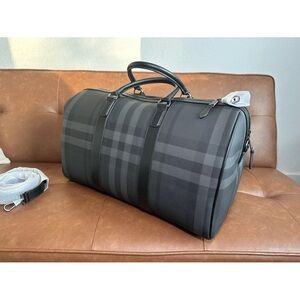 Burberry Boston Holdall Duffle Bag In Charcoal Color small imperfection
