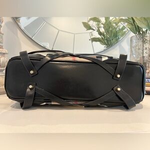 Bridle Medium Gosford Hobo in Black in EXCELLENT CONDITION. This ultra-chic hobo is crafted of Burberry House Check canvas. The bag features an embellishment of external horizontal belts, black leather trim, brass hardware, and looping top handles. The top is open to a black fabric interior with zipper and patch pockets.