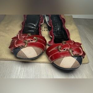 Burberry Bridle Housecheck Plaid Falcony Ballet Flat Sz 35 US 5 Triple Buckle