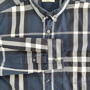 Burberry Brit Check Print Button Down Shirt in Ink Blue Size XL