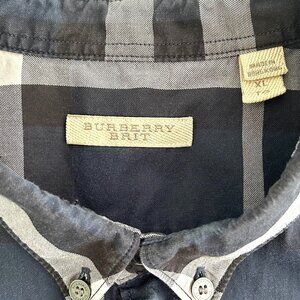 Classic Burberry Brit check print shirt with button-down collar and button front.