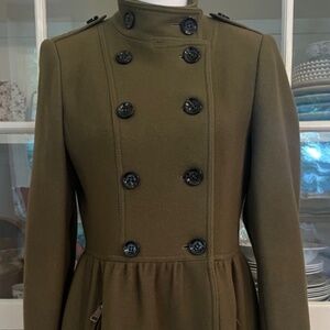 Burberry Brit Double Breasted Military Wool Cashmere Coat US 10 / UK 12 Green