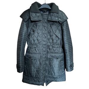 Burberry Brit Finsbridge Quilted Black Coat Small Belted Hooded Jacket Outerwear