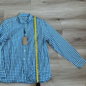 Burberry Brit Garrison gingham sport shirt, Spread Collar , button front , rounded barrel cuffs, Embroidered equestrian knight at left chest, Yoked back shoulders, box pleat, Shirttail hem, 100% Cotton, Color Light Blue Elevate your style with this blue checkered men's shirt. Perfect for both casual and formal occasions. Experience comfort and fashion in one.