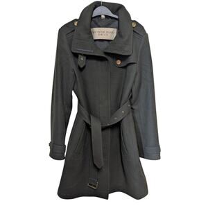 Burberry Brit Green Rushworth Wool Belted Trench Coat Lined 12