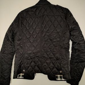 Black burberry brit quilted winter/fall jacket. Size SMALL. True to size. Buttons on the back and shoulders