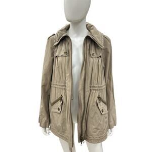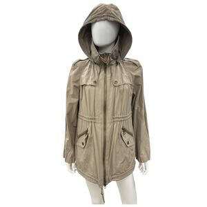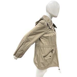 Burberry Brit Jacket Women’s Size 6 Utility Trench Rain Cargo with Hood in Beige