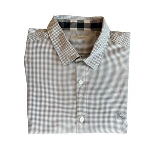 Keywords: Burberry shirt, Burberry Brit, Mens dress shirt, Gingham shirt, Checkered shirt, Long sleeve shirt, Gray shirt, Casual shirt, Button down shirt, Designer shirt, Men's fashion, XL shirt
