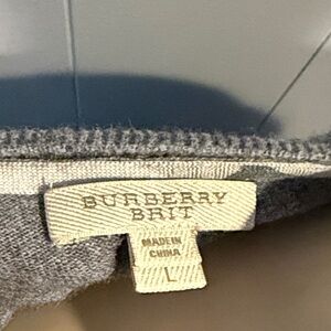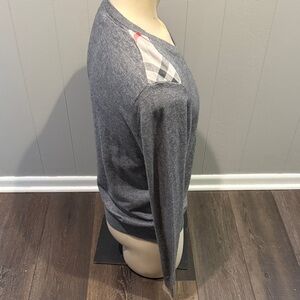 Burberry Brit Men's Gray Plaid Shoulder V-Neck Sweater