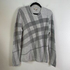 Burberry Brit Mens Large Gray Checkered 100% Cashmere Sweater Slim Fit Knit Top