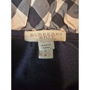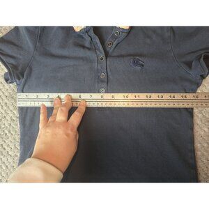 Burberry Brit Navy Blue Honeycomb Knit Novacheck Collar Detail Polo Preppy