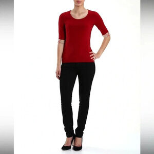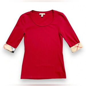 Burberry Brit Plaid Check Cuff 3/4 Sleeve Top