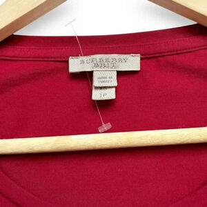 Perfect balance of casual luxury. This Burberry top flaunts check-trimmed cuffs for heritage style.
