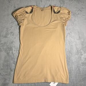 Burberry Brit Puff Sleeve T Shirt Womens Small Scoop Neck Soft Designer Elevated
