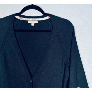 Burberry Brit Sweater Womens L Black Cotton Cashmere Blend Button Up Cardigan