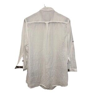 Burberry Brit White NovaCheck Tunic Top 3/4 Roll Tab Sleeve Ramie Blouse XL