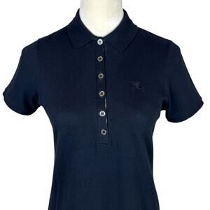 Burberry Brit Women's Slim Fit Black Pique Embroidered Logo Short Sleeve Polo